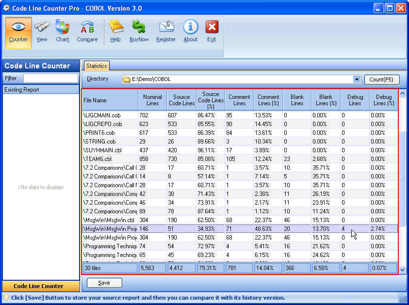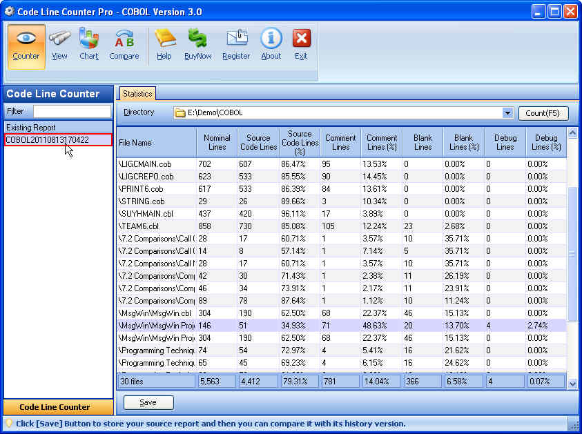 Quick Start of Code Line Counter Pro - COBOL Version
